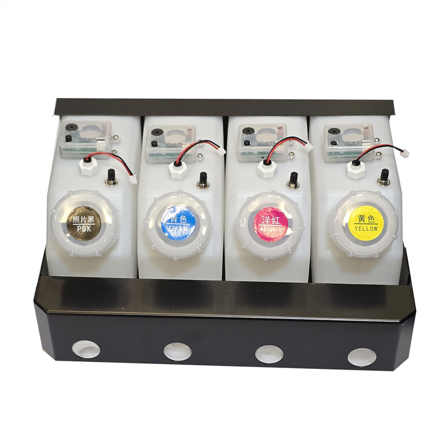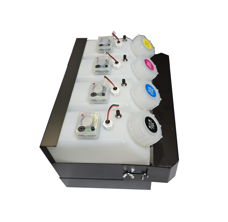 این مجموعه شامل 4 مخزن با ظرفیت هرکدام ۱.۵ لیتر است که برای ذخیرهسازی و تأمین پایدار مرکب در دستگاههای چاپ اکوسالونت طراحی شده است.